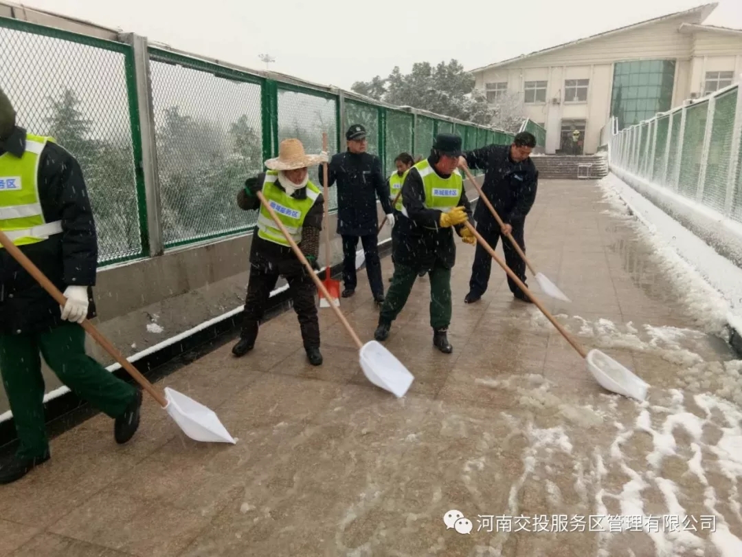 面對降雪,服務區全體員工積極應對,以雪為令,除雪保通。
