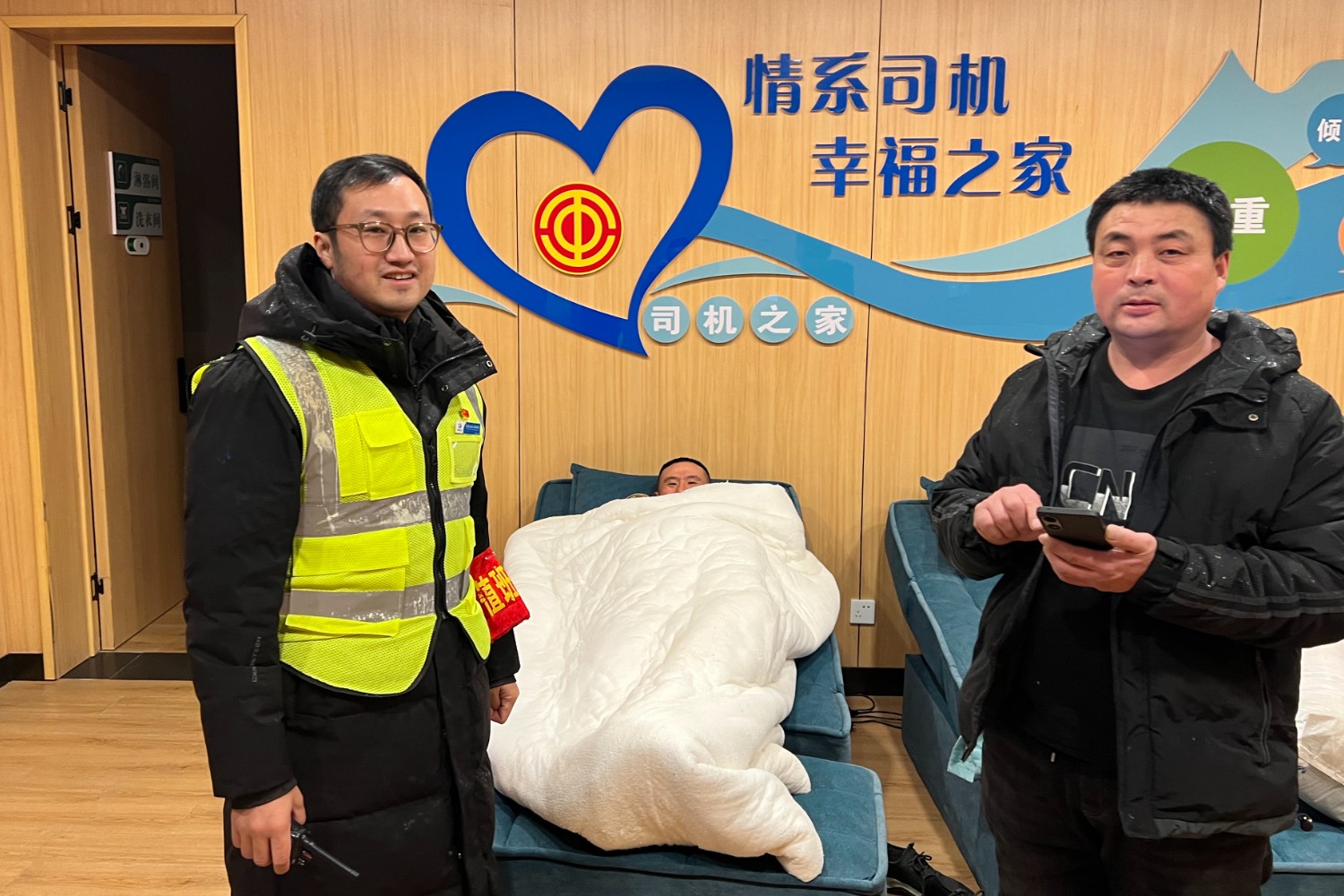 司乘對停車區的熱情服務連連感謝,激動地說道:“特別感謝能在這寒冷的深夜為我們提供房間,讓我們能有個臨時的家,謝謝你們!”