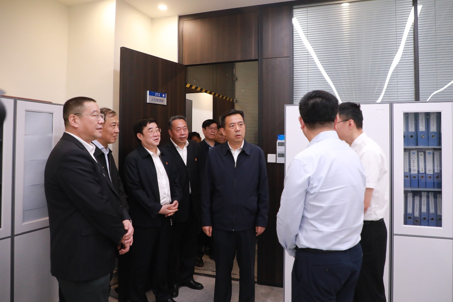 付磊董事長一行參觀了公司辦公地點,查看了辦公樓功能布局,看望慰問了巡察組工作人員和服務區公司在崗職工。在人力資源部,付磊董事長詢問了公司人員組成情況,詳細了解了服務區公司與原交發集團和鼎公司本部人員整合情況,提出要注重培養選拔優秀年輕干部,鼓勵年輕干部下基層歷練,豐富基層工作經驗。在稽查考核部,付磊董事長詢問了稽查人員配備、日常工作開展情況,指出要充分利用視頻監控、執法記錄儀等手段,強化稽查實效,推動各項工作落實落地、見行見效。在財務資產部,付磊董事長聽取了人員情況、本部管理賬套及資產等匯報,指出要優化公司的資產配置,進一步盤活存量資產,提高資產使用效率。在文印社,付磊董事長鼓勵年輕職工要發揮自身優勢,通過現代科技、創意動漫等打造服務區文旅品牌,提升公眾美好出行體驗。