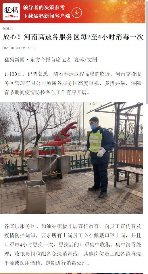 猛犸新聞:《放心!河南高速各服務區每2至4小時消毒一次》