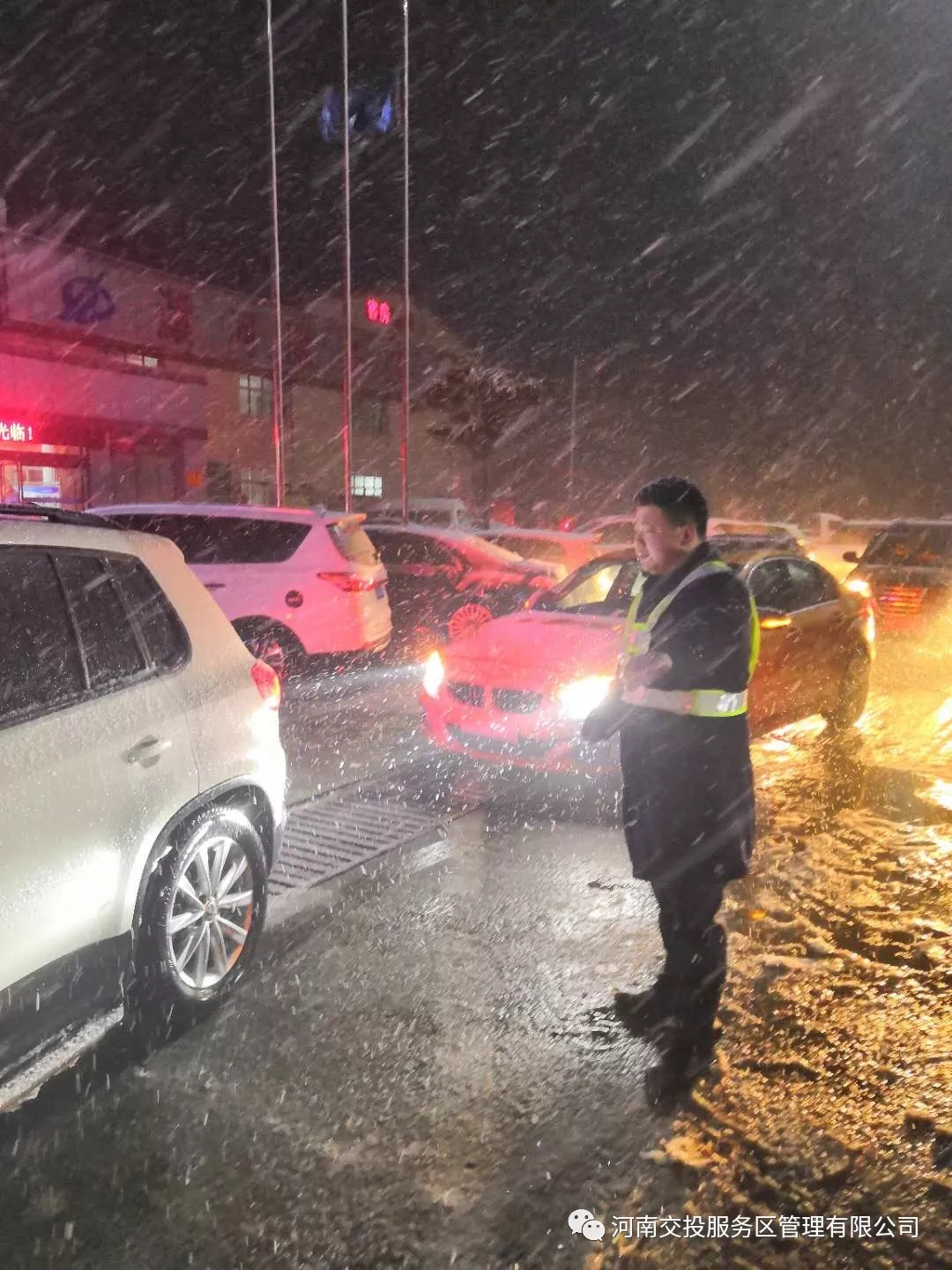 2019年1月30日至31日,我省大部分地區突降雨雪,并伴有霧霾,高速公路通行受到不同程度的影響。根據上級對于惡劣天氣相關工作要求,結合公司實際,交投服務區公司所屬服務區、停車區立即啟動應急預案,組織員工清掃積雪,并對主要經營場所門前、上下匝道等重點區域撒布融雪劑。同時積極做好餐飲、開水供應、購物、汽修、住宿等服務保障工作。